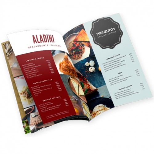 Acabamentos: CARDÁPIO - 2 GRAMPOS, CARDÁPIO - LAMINAÇÃO FOSCA 1/1