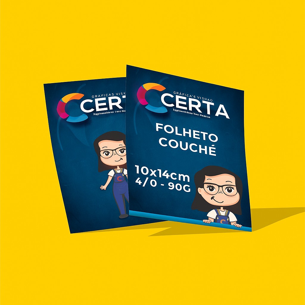 FOLHETO COUCHÊ 90G - 10x14cm - COLORIDO FRENTE E VERSO