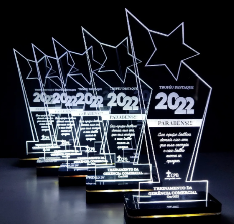 premiações corporativas, eventos esportivos, homenagens, campanhas de vendas e reconhecimentos profissionais. Produzido com